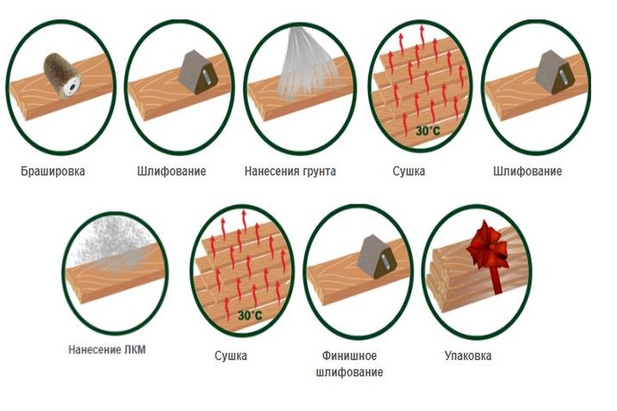 2. Грунтовка. Проводится для улучшения адгезии, выравнивания впитываемости древесины и защиты основы от внешних воздействий.